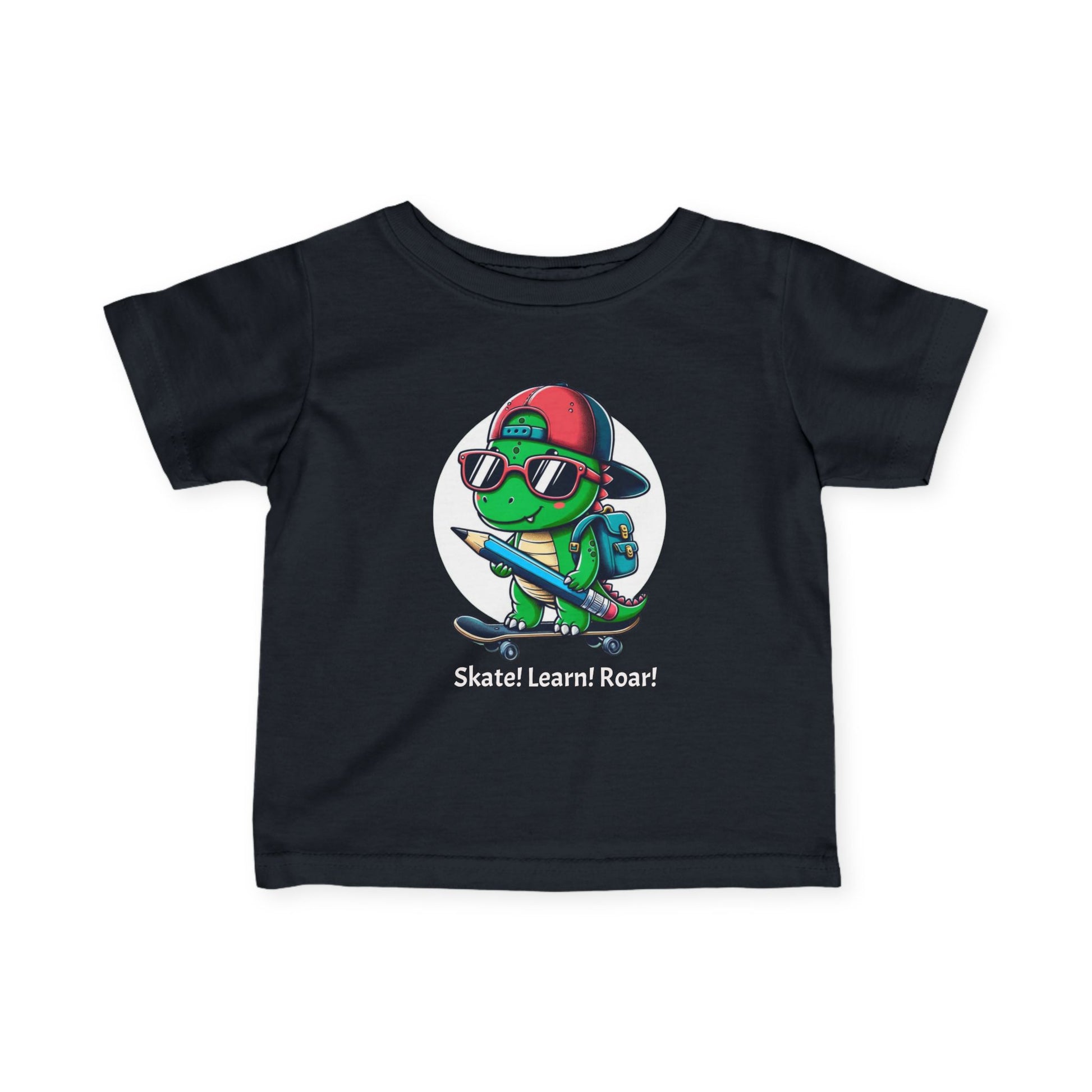 Roll into fun with the Cool Skateboard Dino Graphic Infant Jersey! Featuring a playful dinosaur cruising on a skateboard, this soft and breathable jersey keeps your little one comfy during playtime, tummy time, or casual outings. Perfect for tiny adventurers who love dinosaurs and big style in a small package.